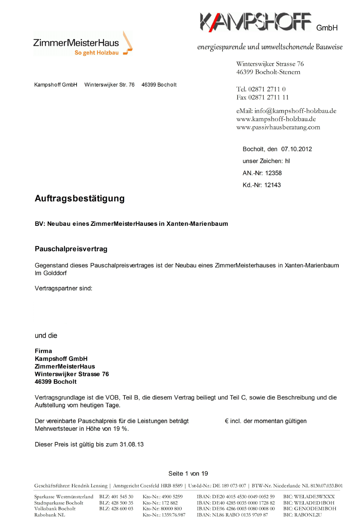 Im nächsten Schritt erörtern wir mit Ihnen die Angebote und stimmen die Leistungen ab, die durch Holzhausbau Kampshoff ausgeführt werden sollen.