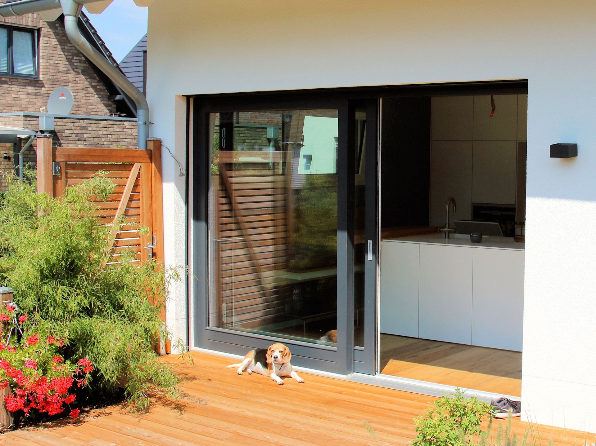 Außentüren wie z.B. die Haustür und mindestens eine Terrassentür werden barrierefrei ausgeführt. D.h. sie besitzen eine Schwelle, die maximal 2 cm aus dem Bodenbelag vorsteht.