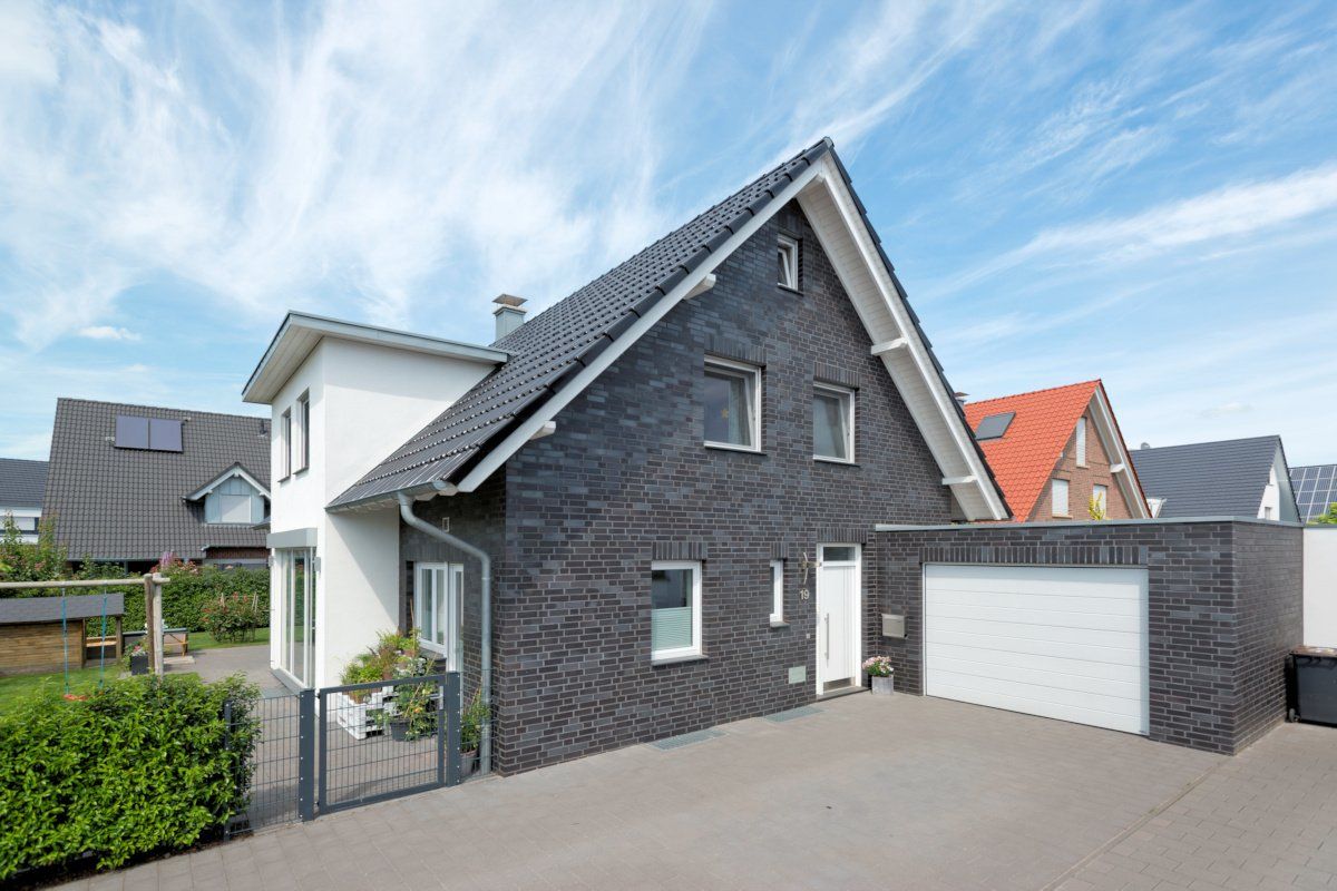 Die äussere Gestaltung besteht aus einem modernen Vormauerziegel und Erker mit Putzfassade auf einem Holzweichfaser-Wärmedämmverbundsystem.