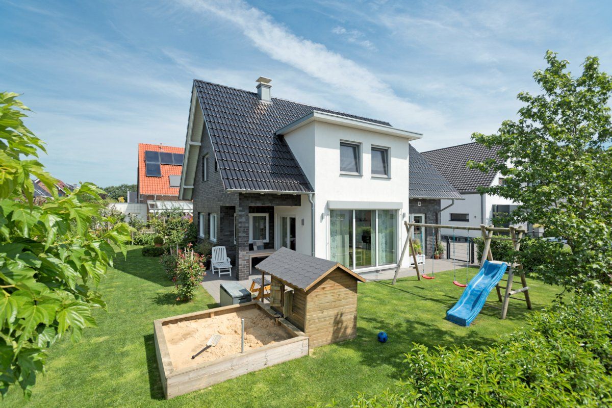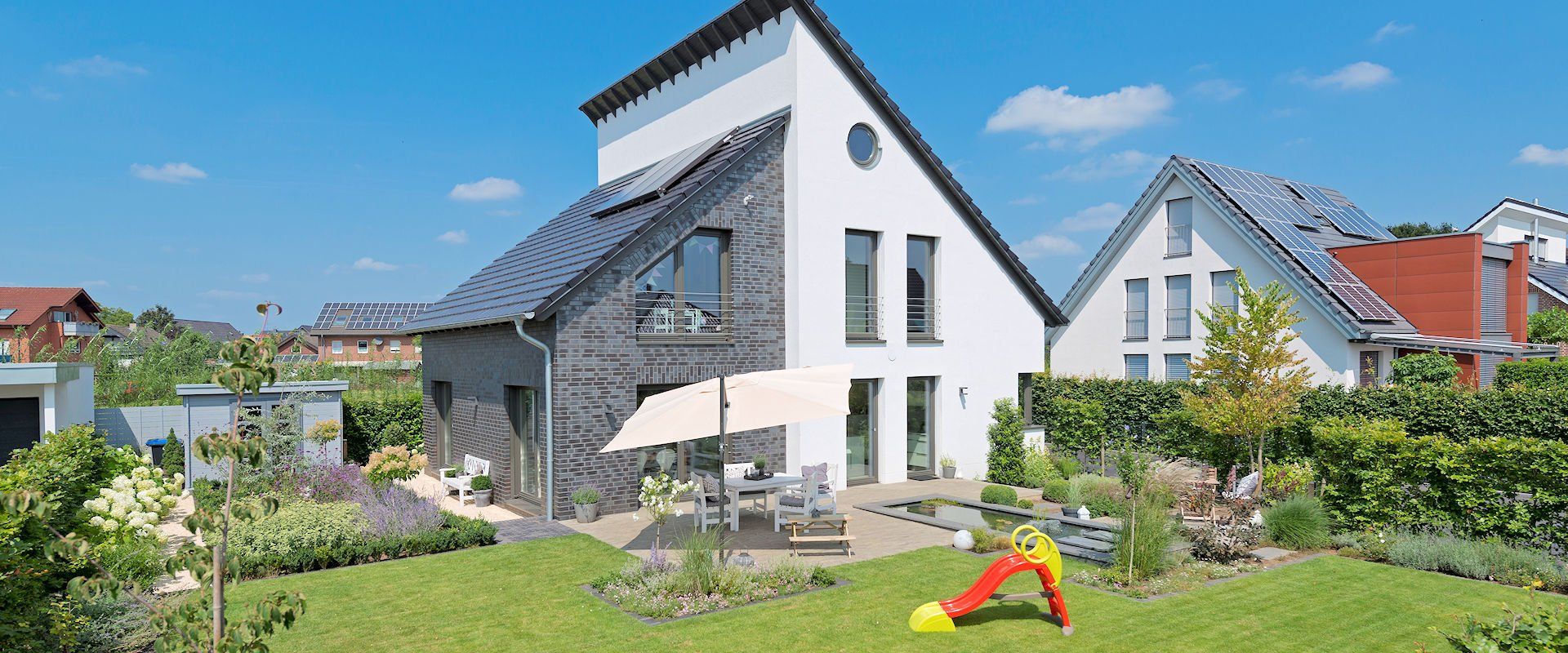 Dieses Wohnhaus wurde in einer Neubausiedlung gebaut,