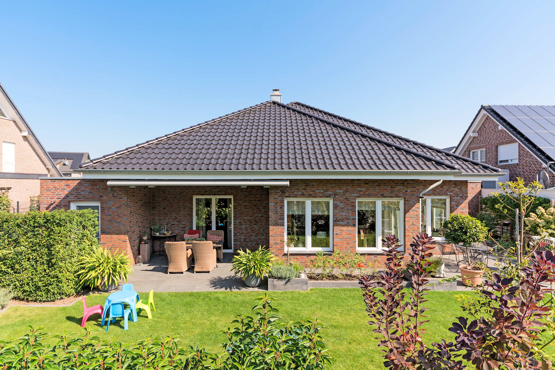 Ein Einfamilien-Wohnhaus mit einer Fassade aus Vormauerklinker.